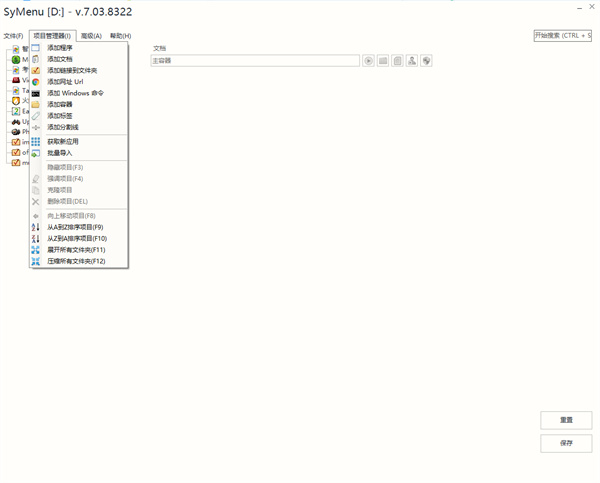 1、SyMenu提供多种资源快速管理,可以添加电脑的软件、文件、命令行、网页快捷方式到软件管理2、支持拖动的方式添加,直接从电脑桌面添加资源管理