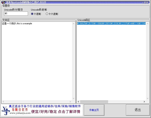 文本与unicode码转换小工具是一款可以实现汉字和Unicode相互转换的软件。这对程序员来说是一个很方便的小工具,比如在有的时候需要用到,Ajax 时候一般使用 \u 编码传送。用这款小工具则无需手动到cmd下转换,那样太麻烦了。在计算机科学领域中,Unicode(统一码、万国码、单一码、标准万国码)是业界的一种标准,它可以使电脑得以呈现世界上数十种文字的系统。文本与unicode码转换小工具使得转换变得快捷,让计算机工作者可以更高效的工作。有需要的朋友欢迎下载体验。