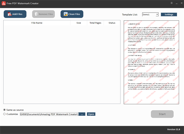 2、Free PDF Watermark提供了最简单的方式将文本或图像作为水印添加到PDF文档文件中