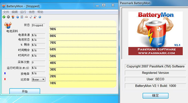 1、下载并运行软件,点击界面中的“开始”按钮就可以开始对笔记本电池进行监控;