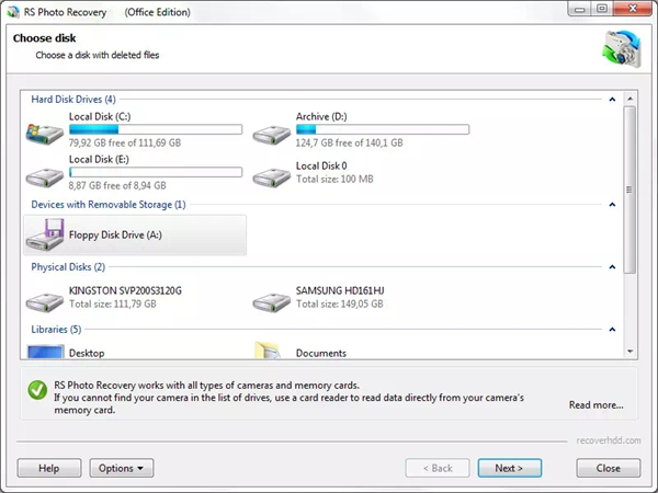 RS Photo Recovery可以从硬盘驱动器、SSD驱动器和存储卡的所有品牌和型号中恢复照片,单击此处查看支持的存储卡的完整列表