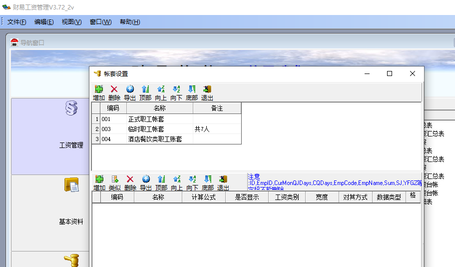 财易工资管理软件是一款帮助人事轻松进行工资管理的软件,可以设定多个工资帐套来管理员工工资,支持计件工资和计时工资核算。软件支持自定义打印工资表及工资条,支持加减乘除混合运算。适用于大中小型企事业单位、工厂、进出口公司等行业。财易工资管理软件使用简单易上手,支持从Excel快速导入先前人事资料,大量报表免费使用,一键轻松打印。用户还可以自己设置编码格式,条形码格式,用条码形式管理员工档案!
