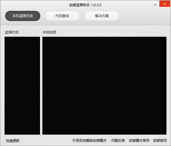 1、启动软媒蓝屏助手后,默认会显示本机蓝屏历史。