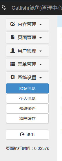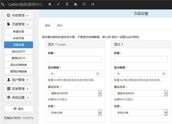 (注:页面设置功能是Catfish CMS系统的特有功能,Catfish Blog系统不需要该功能)