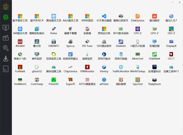 装机检测就有包括系统激活工具、驱动管理、常用运行库、分区助手、镜像下载器,以及各种检测工具。