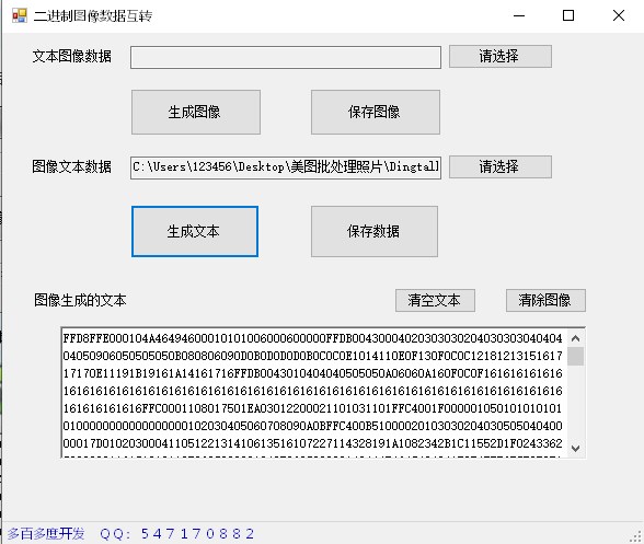 二进制图像数据互转工具是一款能够实现图片和二进制的互相转换,它能快速的将你上传的图片转换为串口上识别的编码,软件将上传的图片文件转换为二进制形式的字符串,然后将他存储在一个隐藏字段中,用的时候去提取,用完后再将它保存到数据库中去,方便了编码人员的编辑,大大提高工作效率。图片二进制转换器绿色安全、下载即可使用,有需要的朋友就赶紧下载使用吧!