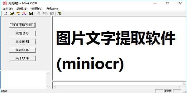 MiniOCR顾名思义就是OCR文字识别工具了。相信大家用的OCR识别软件应该有很多了吧,其中不乏有精品。但是都有一个比较恼人的问题,首先大多是商业版本,必须付费使用。另外免费版本有很多限制,几乎无法进行有效使用。所以,这绝对是一款非常实用的工具。MiniOCR能够准确的识别图像中的文字。而且一个突出的优点就是对文字字体的识别功能。通过采用优化的光学字符识别系统,以符合特征的方法。做到了软件的小巧化。而且,之所以称之为MINI,就是因为其小巧的原因。其中拥有的字符集有3755个一级汉字,覆盖面非常的广。而且包含了多种字体。所以,非常的实用。绝对值得大家使用。喜欢的朋友一定要下载MiniOCR来体验一下啊!
