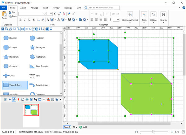 除此之外,类别于mydraw系列之前的产品而言,在全新的mydraw 7当中,还可帮助您轻松创建所需的任何形状,你可以根据个人与公司的需求进行设计,整个过程十分简单易上手。您可以使用Nurbs工具自由绘制形状,或者使用组合函数(联合,相交,减法和排除或)来创建基本形状的新形状,功能非常的强大。MyDraw绘图工具是适用于Windows的最佳Microsoft Visio替代品,可以通过编辑现有的图表模板或制作自己的图表,从而让你快速绘制出精美的流程图。
