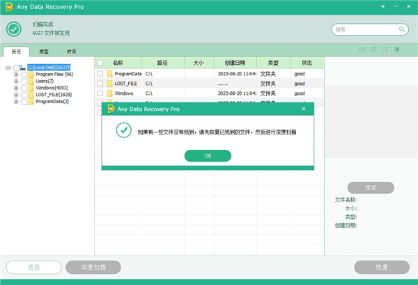 2、深度扫描:深度扫描可以扫描更多的文件,从而需要更多的时间。如果使用快速扫描找不到文件,请切换到深度扫描。