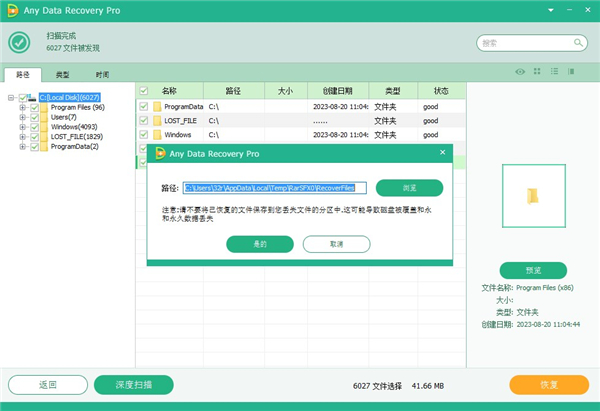 选择计算机上的路径来保存恢复的文件,单击“确定”以完成恢复。
