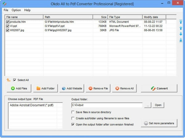 Okdo All to Pdf Converter Pro是一款简单实用、功能强大的万能PDF转换工具应用,而且软件顾名思义,可支持用户一键在线,通过Okdo All to Pdf Converter Pro轻松将doc、docx、xls、xlsx、ppt、pptx、png、jpg、tiff等任何常见文档或者图像格式转换为PDF文档。并且软件具有简约直观、易上手的操作界面,用户只需打开运行软件并选择你所需要的转换的文件列表,然后单击“转换”确定即可,有效高输出质量、高效率速度特点,以便你获得更好的输出转换结果。致力于为广大用户带来最便捷、最优质的格式转换服务体验。有需要的朋友千万不要错过,赶紧来下载体验吧!