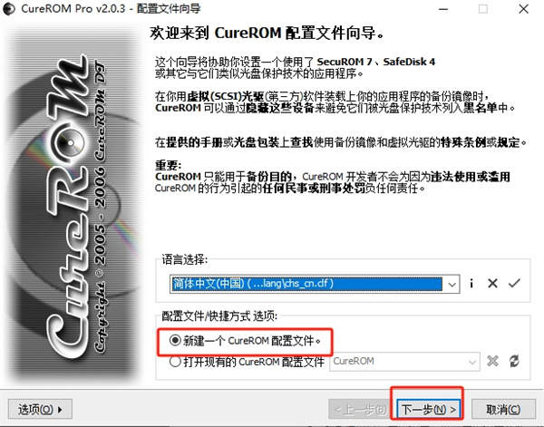 2、首先,选择“创建一个CureROM配置文件”选项,点击下一步
