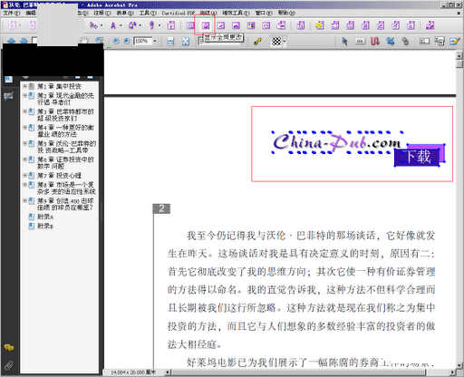 1、如下图所示,红框部分为水印的地方。安装了PitStop后,在Acorbat工具栏上会出现一排PitStop相关的按钮,第一步我们首先选中“选择对象”按钮(下图中左上的红框部分),选中后可以进行下一步选择水印的工作(下图可点击看大图)。