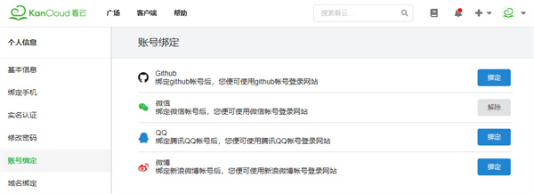 用户名一旦设置就不能再更改,邮箱以后可以在个人设置里面更换。如果你已经有看云账号的话,还可以绑定第三方账号登录。