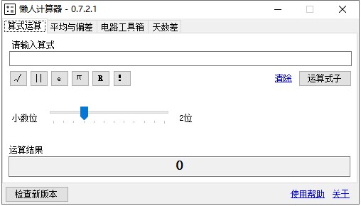懒人计算器是一款专门为了快捷计算而设计的软件工具,包含算式运算,一组数据的求平均以及偏差值的计算,电路计算工具箱,天数差计算等多种功能。对于追求工作效率的用户们来说懒人计算器无疑是一款简单高效的计算器工具,有需要的小伙伴们,赶紧来下载吧!