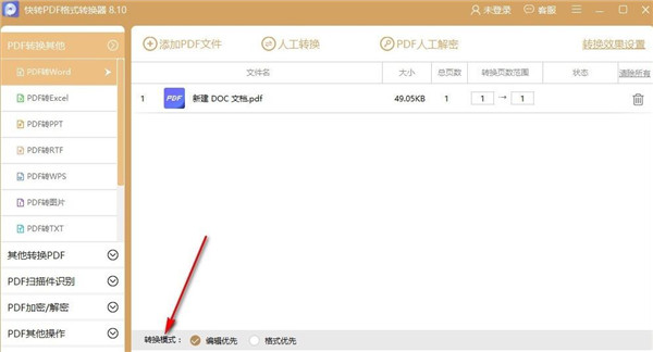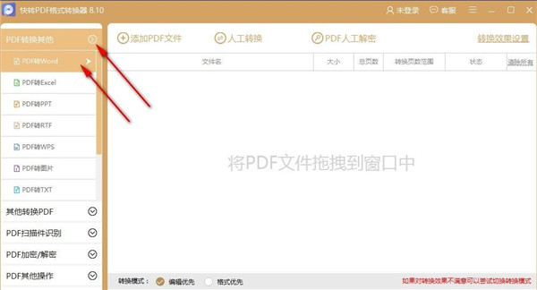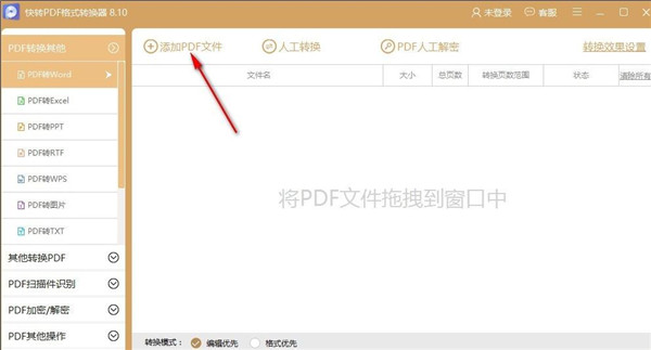 1、首先打开快转PDF格式转换器软件,点击PDF转Word,进行相关操作(这里小编以8.10版本为例)