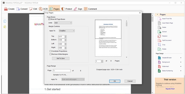 在弹出窗口中设置“裁剪”选项,单击“确定”以裁剪页面
