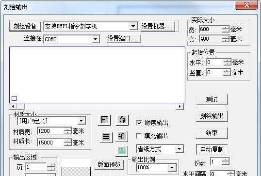 2、人性化的刻绘输出:输出前可以将区域及内容预显在屏幕上,页面可以任意移动及任意定义原点。