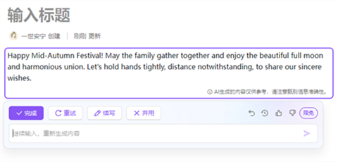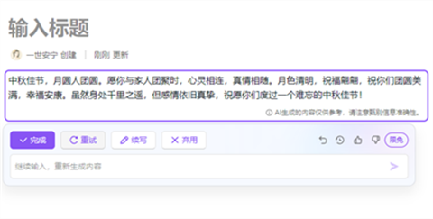 AI模板中的模板为固定模板,我们只需输入固定的提示词即可生成完整的信息。