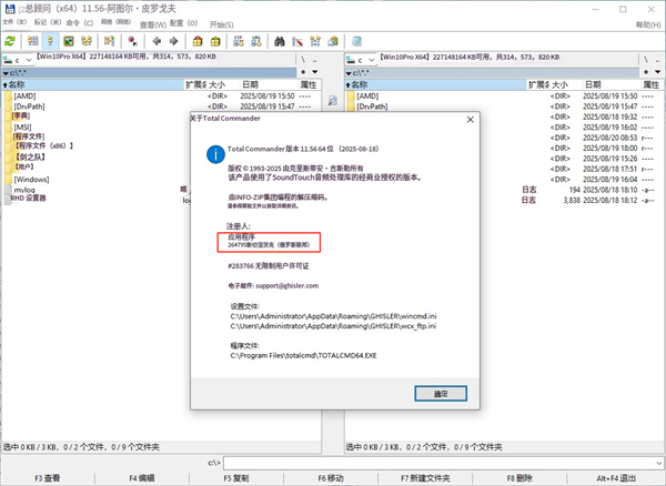 5、安装成功后,进入软件根目录,选择tcrun.exe or tcrun64.exe启动,即可以得到免费中文版的Total Commander。