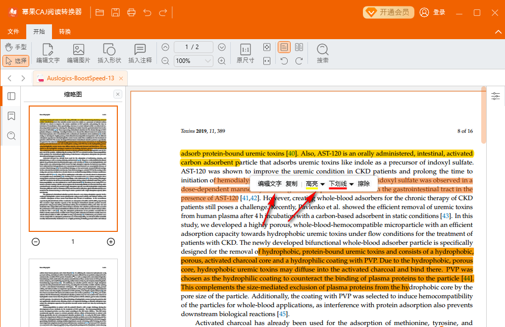 幂果CAJ阅读转换器是新一代的CAJ阅读、PDF编辑、文档转换的办公学习软件,它可让用户在电脑上轻松加载并阅读CAJ文档,提供高效便捷的办公需求。幂果CAJ阅读转换器界面清晰,左侧显示的文档缩略图便于快速定位页面,右侧则呈现正文内容,还支持鼠标选取文字添加高亮,并允许对文档内容进行自由编辑,包括删除、替换或续写文字,实现CAJ文档的二次修改。