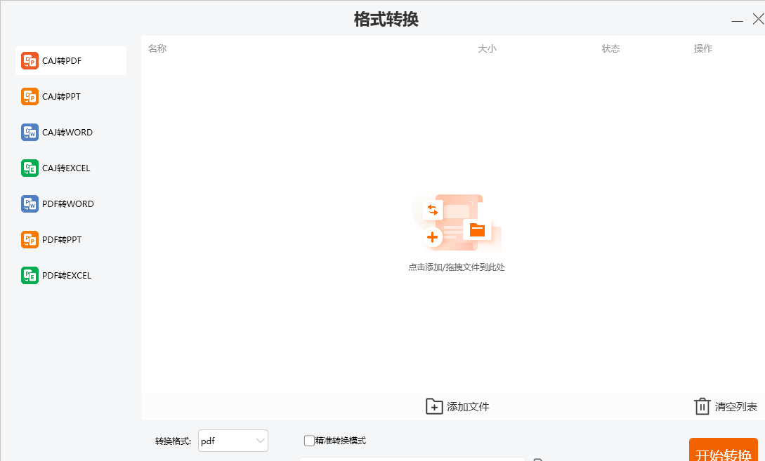 6、转换界面如图所示,将CAJ转换为不同的office文档格式,也支持将PDF转换为wps文档格式。