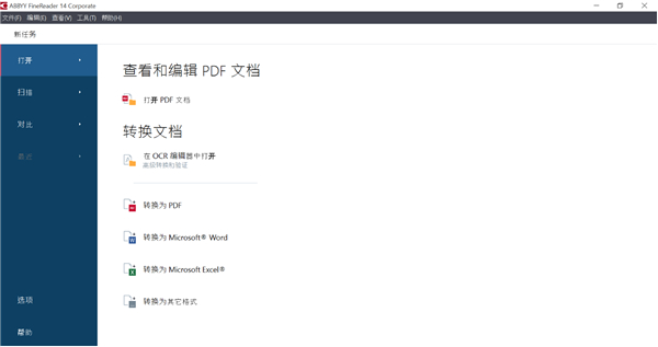 abbyy finereader14是一款在原版本软件功能上进行改进和优化的升级版本图片文字识别软件,功能经过升级得到大大的改善,让用户更好的使用它的实用性性能,从而提升用户体验和工作效率。abbyy finereader14作为全新推出的版本,带来了最新的功能和不一样的体验。软件在原有的基础上速度更快,更精准的识别文本,并且支持多种格式的文档合并成一个PDF文档,支持批量处理。abbyy finereader14可以非常轻松扫描纸质文件或PDF转换为可编辑文本,保留原来的布局和格式。改进的图像预处理算法能确保更好地识别拍摄文本,全新的照片校正功能包括自动剪裁、几何失真、夜晚黑暗和背景颜色校正。新版本中扩展了验证和校正功能。可在验证窗口设定已识别文本的格式。您可以禁用诸如页眉、页脚、脚注、目录和编号列表之类的结构元素的重建。只需点击一下鼠标,即可轻松地识别任何包含文本、图片或表格的图像,并复制到剪贴板中。识别带重音符号的俄语文本。针对中文、日语、朝鲜语、阿拉伯语和希伯来语的OCR质量得到提高。并且能存成RTF、TXT、DOC、CSV、XLS或HTML等格式。有了它用户就再也不用在扫描软件、OCR、WORD、EXCEL之间来回切换,处理文件也就会变得就像打开已经存档的文件一般便捷。FineReader 14包含了大量的 PDF 编辑工具、文档比对和更具感知性的 OCR 文档转换功能,软件运行更为流畅,提高了软件整体性能,它通过结合功能强大的 OCR 与转换技术,以及必不可少的 PDF 工具, 使基于纸质文档和 PDF 的处理工作得以简化。此次小编给大家带来的是ABBYY FineReader 14简体中文企业增强版破解软件下载,软件已经完美破解,无需注册机或者破解补丁进行软件注册授权激活即可使用户无限制、永久免费使用,解除了许多功能限制,小编亲测可用,喜欢的用户欢迎前来本站下载使用。并且,其软件中文版界面,符合中国人的使用习惯,摆脱了英文界面束缚,使其无语言方面的障碍轻松自由地使用本软件。