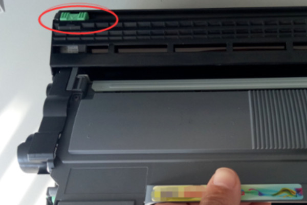 2、然后看到新的硒鼓上有一个盖子,这个盖子是用来保护硒鼓的,在换硒鼓的时候记得一定把这个盖子拿下来,否则是安不上去的。