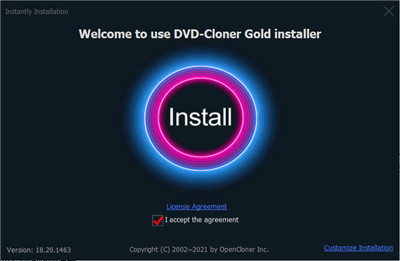 2、双击“dvd-cloner-gold_x64.exe”文件运行,勾选协议