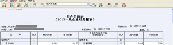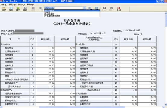 打开对应的财务报表报表自动获取纳税人识别号、纳税人名称、金额单位、报表时间等。