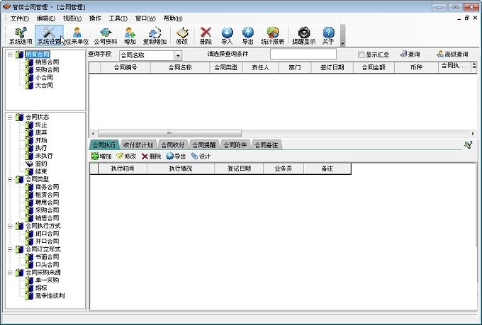 智信合同管理软件是智信软件为帮助企业彻底改善合同台帐容易丢失、合同执行进度更新不及时、合同收付及归档不规范等一系列合同问题而精心设计的一款基于计算机网络技术的现代化管理软件,智信合同管理软件采用数据集中管理的模式,把合同相关的信息都统一汇总到一个数据库平台,企业各部门可以根据各自的权限登录平台进行相应操作,有效解决了以往合同管理不同步的现状,强大的报表统计功能企业的决策提供了更全面准确的依据。