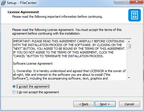 1、鼠标右键下载双击解压软件包,得到FileCenterSetup10.exe软件安装源文件与软件密钥,而后运行FileCenterSetup10.exe文件安装软件,开始软件安装向导,点击next