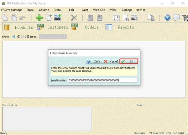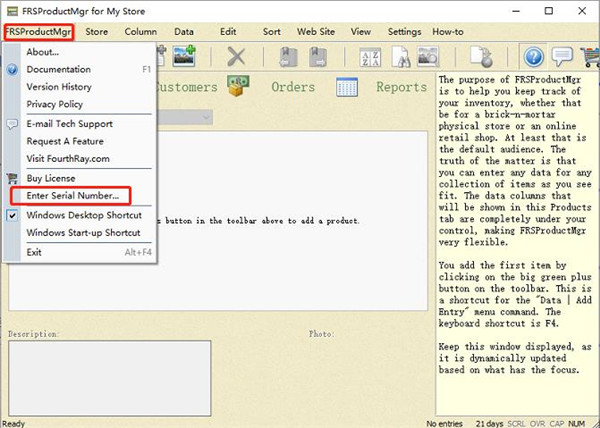7、双击打开FRSProductMgr软件,点击FRSProductMgr下的Enter Serial Number