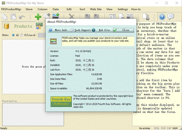 9、点击FRSProductMgr下的About,如下图FRSProductMgr完成,可以放心使用软件