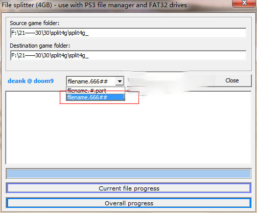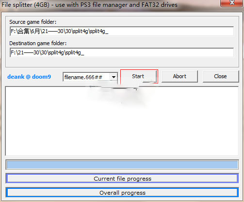 6、最后你要选择filename 、666##,然后按start就能够无损的将文件进行分割了
