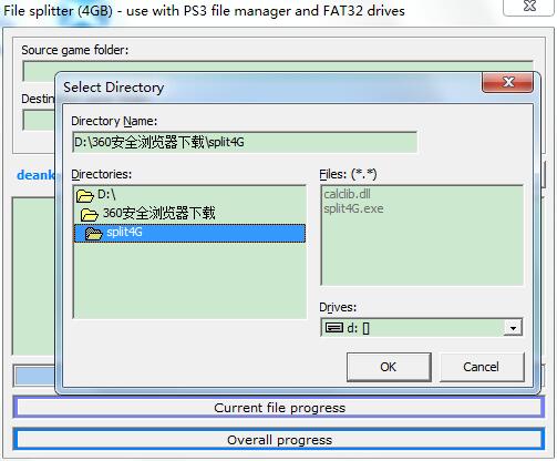split4g官方版是一款非常好用的大型文件分割工具。相信大家都知道在FAT32磁盘格式下,是无法支持4G以上的文件的。那么我们这个时候就无法使用U盘或者移动硬盘进行数据的传输了,所以我们就要使用这个split4g来进行文件的切割,它使用起来十分的简单,能够轻松的将文件进行切割,将一个特别大的文件分为多个3.99GB的文件,让用户能够随时进行存储。特别是PS3游戏大于4G,一般都需要通过split4g软件将其分割成多个文件才能复制到ps3中。如果有需要可以下载使用!!