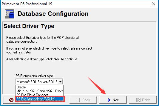 5、然后在该弹框中的下拉列表中选择 P6 Pro Standalone(SQLite) 并点击Next。