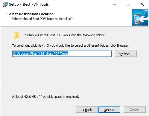安装向导默认设置的软件默认安装路径为C:\Program Files (x86)\Best PDF Tools