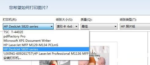 弹出打印机设置窗口,在打印机列表中选择用来打印照片的打印机名;