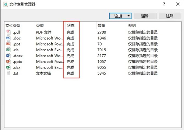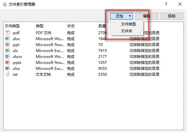 3、如果你想添加其他格式的文件索引,可以点击添加: