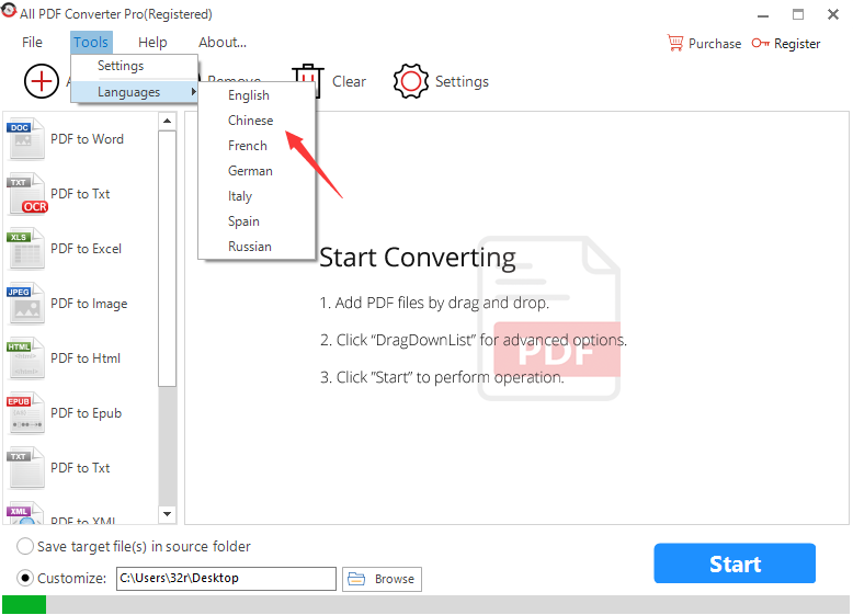 All PDF Converter(全能PDF转换器)pro怎么设置中文