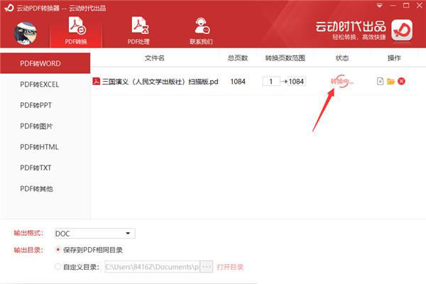 4、PDF转换中,所耗时间依照文件大小有所不同,请耐心等待。
