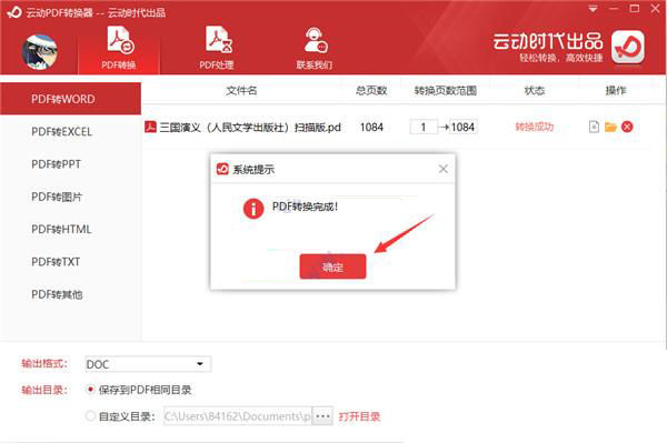 5、转换完成后会出现弹窗提示,点击“确定”即可。