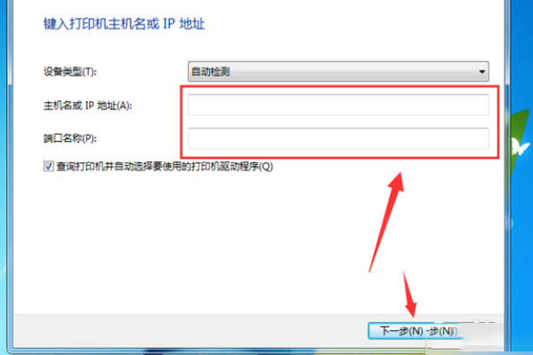 7、然后在里面配置好主机或IP,以及连接的借口,将这些配置完毕点击【下一步】,最后完成窗口设置就可以连接无线打印机成功就可以使用这个电脑进行打印了。