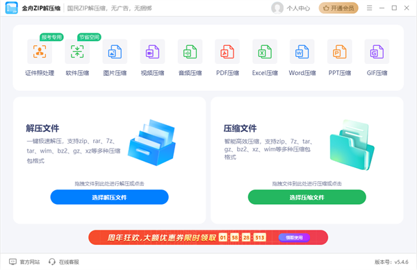 金舟zip解压缩官方版是金舟旗下全新一代文件压缩解压软件,除了能够解压多种不同格式的文件,还支持压缩图片、文档、视频等各种文件格式的解压缩,并为这些文件进行加密保护,贴心保护用户的隐私安全。