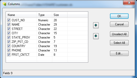3、Advanced XLS Converter允许您使用内置的列编辑器来编辑源文件的列。您可以重新排列列顺序,重命名或隐藏列,甚至更改其类型。
