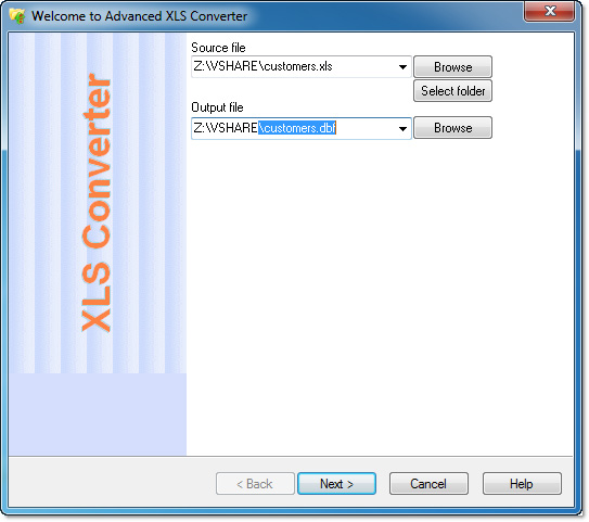 1、Advanced XLS Converter使用向导样式的界面。您只需完成转换的步骤并接收转换后的文件。首先,选择要转换为其他格式的源XLS文件,然后选择输出格式。
