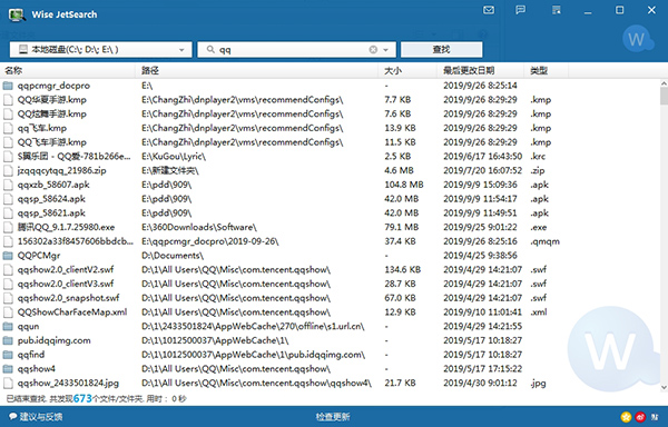 Wise JetSearch官方版是一款免费快速搜索文件工具。该软件使用非常简单,只要你在搜索框里输入你要搜索的文件名,它能够在计算机上搜索文件和文件夹,并且是Windows中内置搜索引擎的绝佳替代品。它支持NTFS和FAT磁盘,也可以按模板查找文件或文件夹。右击可以为您提供一个直接和方便的方式来处理你发现的文件/文件夹。更重要的是,软件只占用一些系统资源。有需要的朋友可以下载试试哦