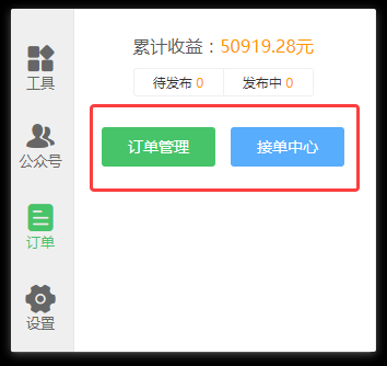 (2)设置了订单管理和接单中心的快速入口,点击后分别跳转至订单管理页面和接单中心页面。