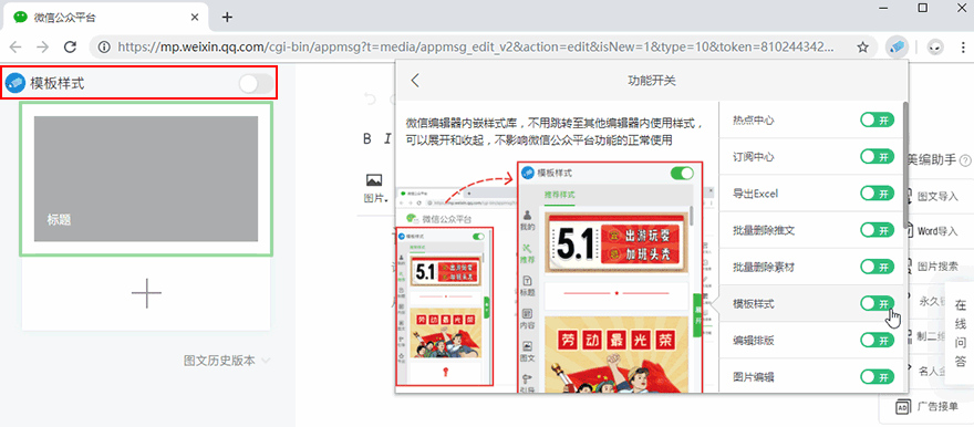 (1)插件功能开关,控制各个功能的打开与关闭。